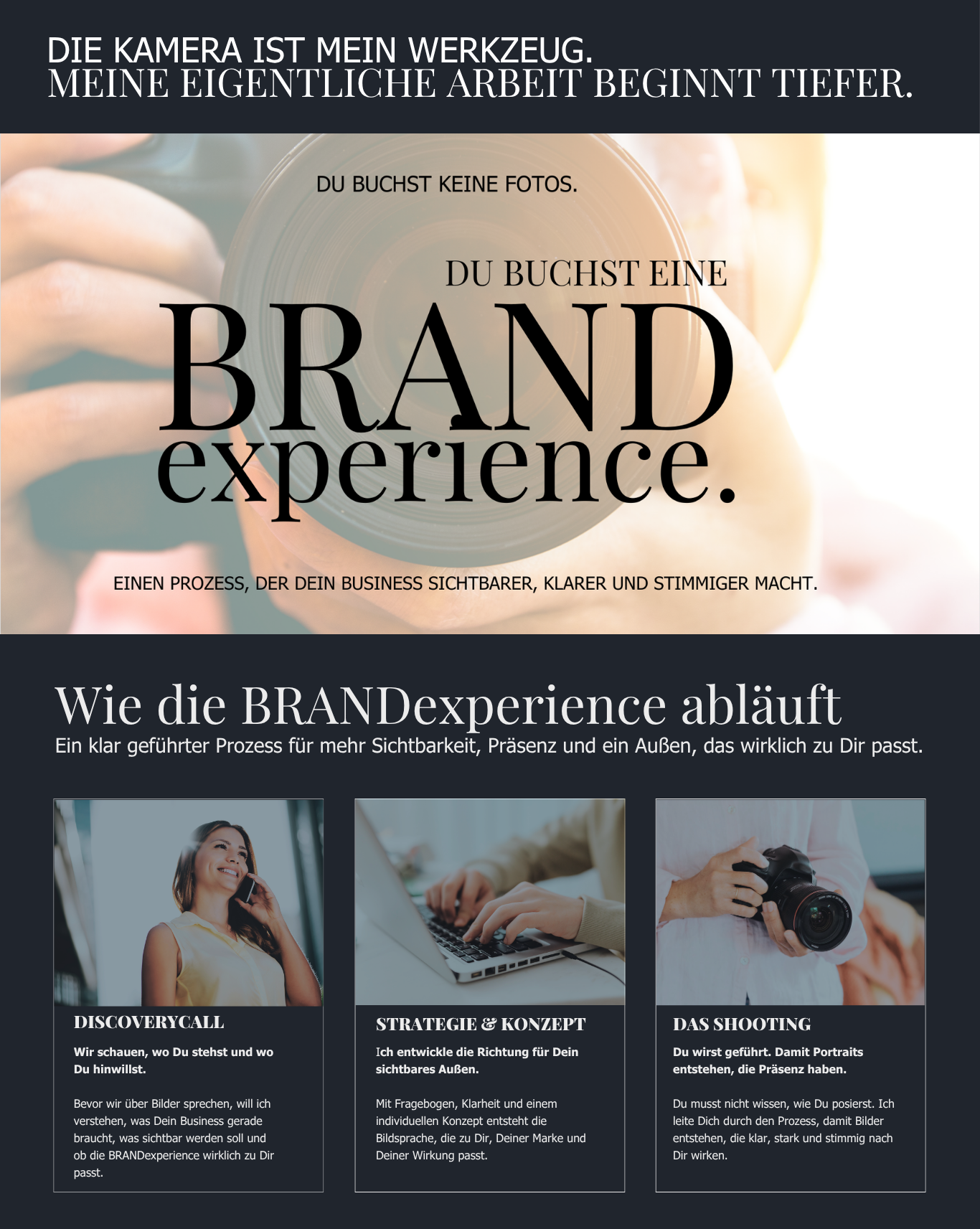 Bevor wir über Bilder sprechen, will ich verstehen, was Dein Business gerade braucht, was sichtbar werden soll und ob die BRANDexperience wirklich zu Dir passt.